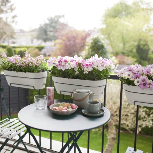 L'accroche jardinière s'adapte aux garde-corps avec une largeur allant jusqu'à 6 cm.